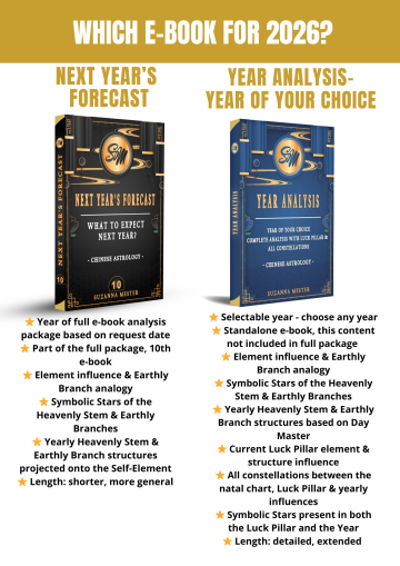 The book explains the elements' influence of the year (for 2026 it is Yang Fire and the Horse) and what structure this pillar represents to you based on your personal chart for the coming year.